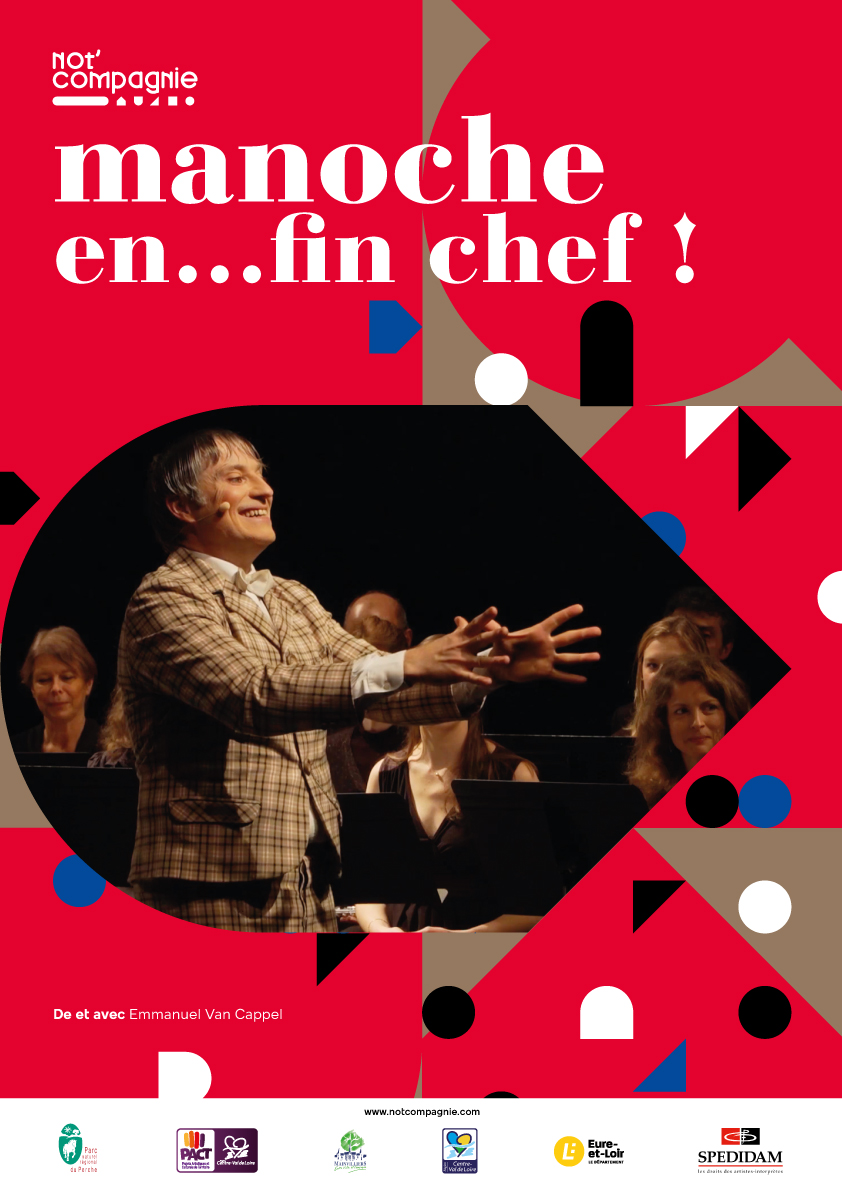 Reconnu comme un artiste protéiforme, il doit troquer son costume de scène pour celui de chef d’orchestre. Manoche cette fois n’est pas seul en scène, son pari : diriger en fin… Chef ! Clown et orchestre devront s’apprivoiser, expérimenter, se faire confiance et jouer.